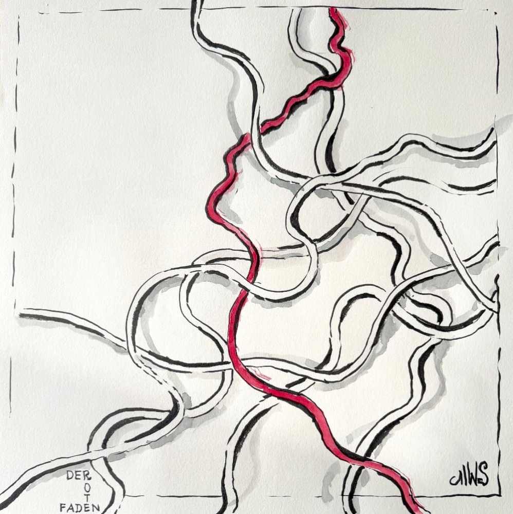 Beide Texte zum Thema „Der rote Faden“ wurden von einer kĂĽnstlichen Intelligenz verfasst (ChatGPT und Gemini) – der Prompt war: „Ich brauche einen kurzen literarischen Essay ĂĽber den Begriff „Der rote Faden“ – kann durchaus originell und amĂĽsant sein.“