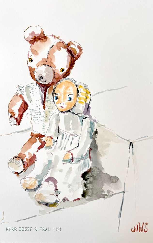 Aquarell, Mensch, Tier, Tusche Herr Josef & Frau Lisi Bild Aquarell auf Papier, 38 x 56 cm Tusche auf Papier, 40×40 cm