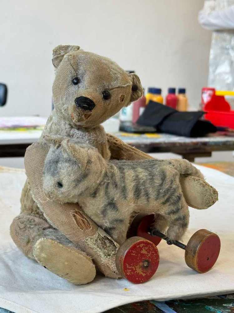 Steiff-Purzelbär und Steiff-Tigerkatze
