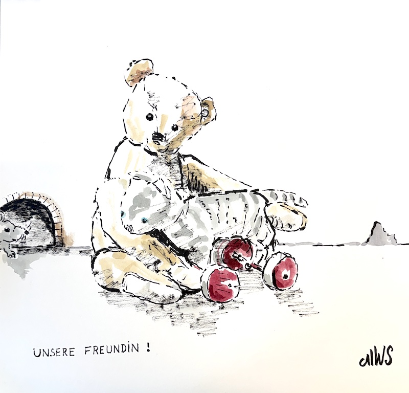 Steiff-Purzelbär und Steiff-Tigerkatze und Maus